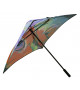 .Double baleinage en acier au carbone.Mécanisme d’ouverture/fermeture sécurisé, sans ressort.Mât diam 14mm, aluminium anodisé laqué noir.Toile 100% polyester.Impression par sublimation (sauf unis), brillance, intensité et durabilité des couleurs, vision du motif par transparence sous le parapluie.Traitement au téflon, imperméable, déperlant, anti moisissure, séchage rapide.Protection UV 50+ .Finition ganse et fermoir auto-agrippant.Bandoulière sac à dos amovible, modèle déposé