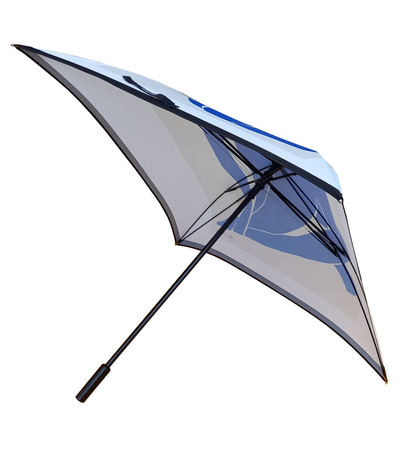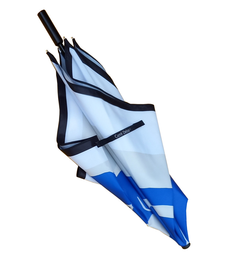 .Double baleinage en acier au carbone.Mécanisme d’ouverture/fermeture sécurisé, sans ressort.Mât diam 14mm, aluminium anodisé laqué noir.Toile 100% polyester.Impression par sublimation (sauf unis), brillance, intensité et durabilité des couleurs, vision du motif par transparence sous le parapluie.Traitement au téflon, imperméable, déperlant, anti moisissure, séchage rapide.Protection UV 50+ .Finition ganse et fermoir auto-agrippant.Bandoulière sac à dos amovible, modèle déposé